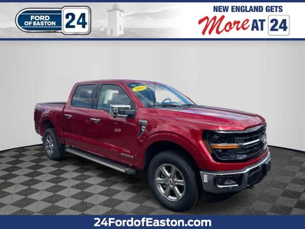 2025 Ford F-150 XLT 4D SuperCrew Red Metallic 4WD 10-Speed Automatic 3.5L PowerBoost Full-Hybrid V6 3.5L PowerBoost Full-Hybrid V6, 4WD. 24 Ford Easton is Massachusettsïÿý?Ts Premier Family-Owned New Ford and Used Car Dealer, serving the needs of customers from South Easton to Brockton, Bridgewater to Stoughton, all of the Greater Boston area, and everywhere in-between for nearly 20 years. In addition to sales, we also offer a state-of-the-art service department with all Ford Master-Certified Technicians, a Quick Lane Tire and Auto center for quick in-and-out service, and of course an outstanding Parts department. 24 Ford Easton is your one-stop-shop for all of your automotive needs. So don't hesitate. Call us now at 888-229-6429 and ask to speak with one of our fully certified and customer-friendly Sales Consultants. From there, you will be able to schedule a test drive of any of our 300+ New and Pre-Owned vehicles on the lot. DEALER FINANCING REQUIRED FOR ONLINE PRICE!!!