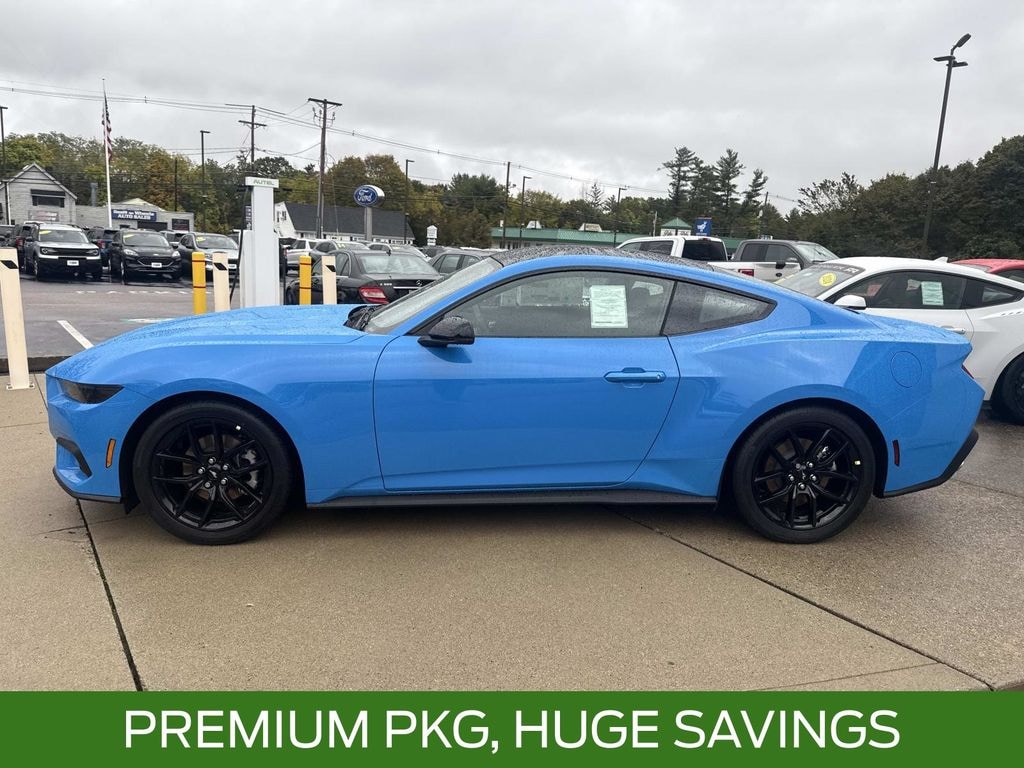 2025 Ford Mustang EcoBoost Premium 2D Coupe Grabber Blue Metallic RWD 10-Speed Automatic EcoBoost 2.3L I4 GTDi DOHC Turbocharged VCT 21/32 City/Highway MPG