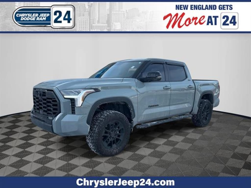 Leather, Heated Ventilated Front Seats, Blind Spot Warning w/ RCTA, Pre Collison Warning. 14" Multi Media Screen, Limited Power Package andTRD Off-Road Package! Experience power, comfort, and advanced technology in this Gray 2024 Toyota Tundra 4x4 Limited CrewMax Pickup. Equipped with a robust 3.4L Twin Turbo V6 engine delivering 389hp and 479ft. lbs. of torque, and paired with a 10-speed shiftable automatic transmission, this Tundra is built for serious capability. Enjoy the confidence of part-time 4WD, the convenience of a Power Sliding Rear Window, and the style of the Limited trim with chrome accents. Inside, a massive 14-inch Toyota Audio Multimedia infotainment system with wireless Apple CarPlay/Android Auto keeps you connected. Safety is paramount with features like Blind Spot Monitor, Rear Cross Traffic Alert, adaptive cruise control, multiple automatic emergency braking systems, and lane keeping assist. Comfort features include heated and ventilated leatherette seats, a panoramic roof, and dual-zone automatic climate control. Tow/Haul mode, trailer brake controller, and 7-pin wiring make it ready for your next adventure. Visit today to see why the 2024 Tundra Limited is the ultimate blend of luxury and utility. Low miles! 2,159 Miles Below Average Chrysler Jeep Dodge Ram 24 is your one-stop-shop for all your automotive needs so don't hesitate; Call us now and ask to speak with one of our fully certified and customer-friendly Sales or Service Consultants. From there, you will be able to schedule a test drive, Brake job or Oil Change of any of our 11 locations. We have New and Pre-Owned vehicles on the lot! Customer First Award for Excellence CJDR 24 is committed to offering our Brockton customers with the highest level of customer service, which is why we are thrilled to be a honored recipient of the FCA Customer First Award for Excellence. This prestigious award is designated for only those dealerships exemplifying extraordinary care and dedication to their customers, in five key areas of performance: Give us the opportunity to show you. Call or visit us today.